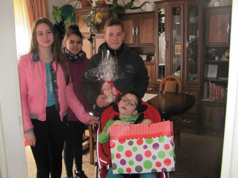 W poniedziałek 20 marca 2017 r. przedstawiciele Samorządu Uczniowskiego Publicznego Gimnazjum w Uszwi odwiedzili chorego kolegę Radka Kępę z Gnojnika. Na ręce jego mamy uczniowie przekazali słodycze i drobną kwotę pieniędzy, którą Samorząd wypracował w czasie swojej działalności.